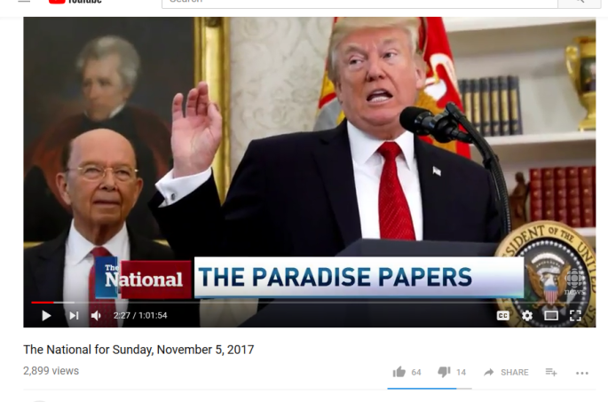 CBC’s The National Reminisces about Justin Trudeau’s Victory while reporting on Bronfman Tax Haven (Nov. 5, 2017)