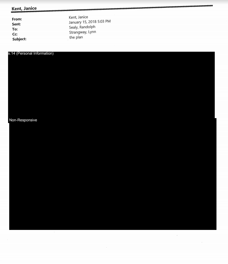 Pauline Johnson Teacher Melissa Timm sent Kent an email with the subject line “Re: sad news”, in which the entire email was redacted.