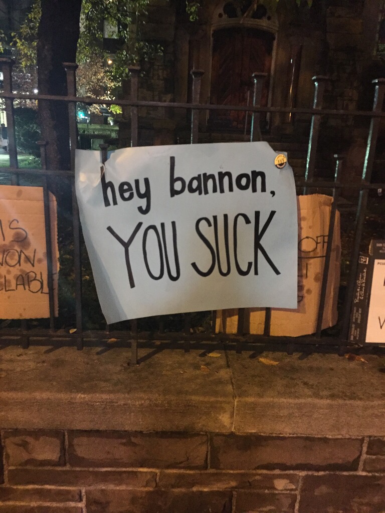 “We’re the true anti-Fascists,” Bannon said when defending Trump’s movement. “Fascism looks to worship the state. The Trump movement has three things: economic nationalism, American first national security policy, and deconstruction of the administrative state.”